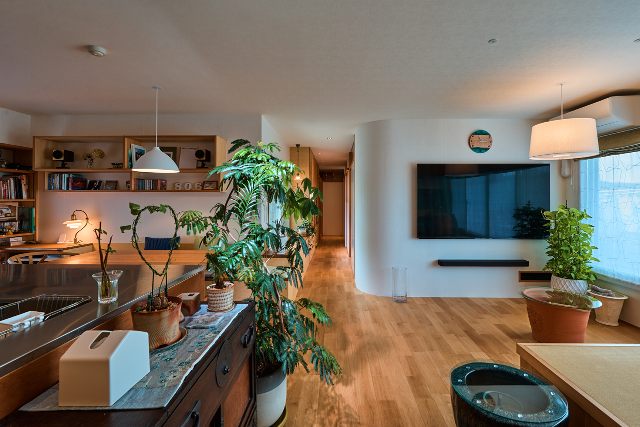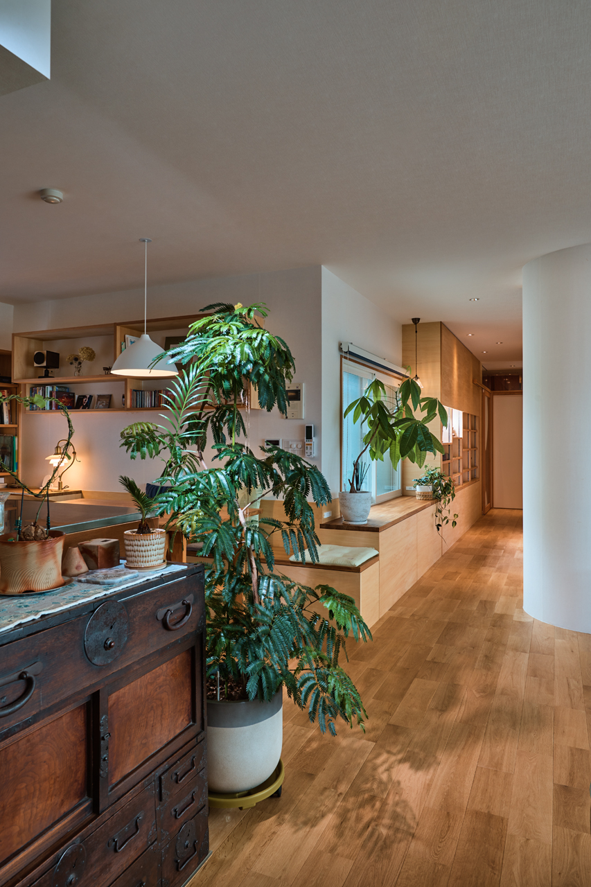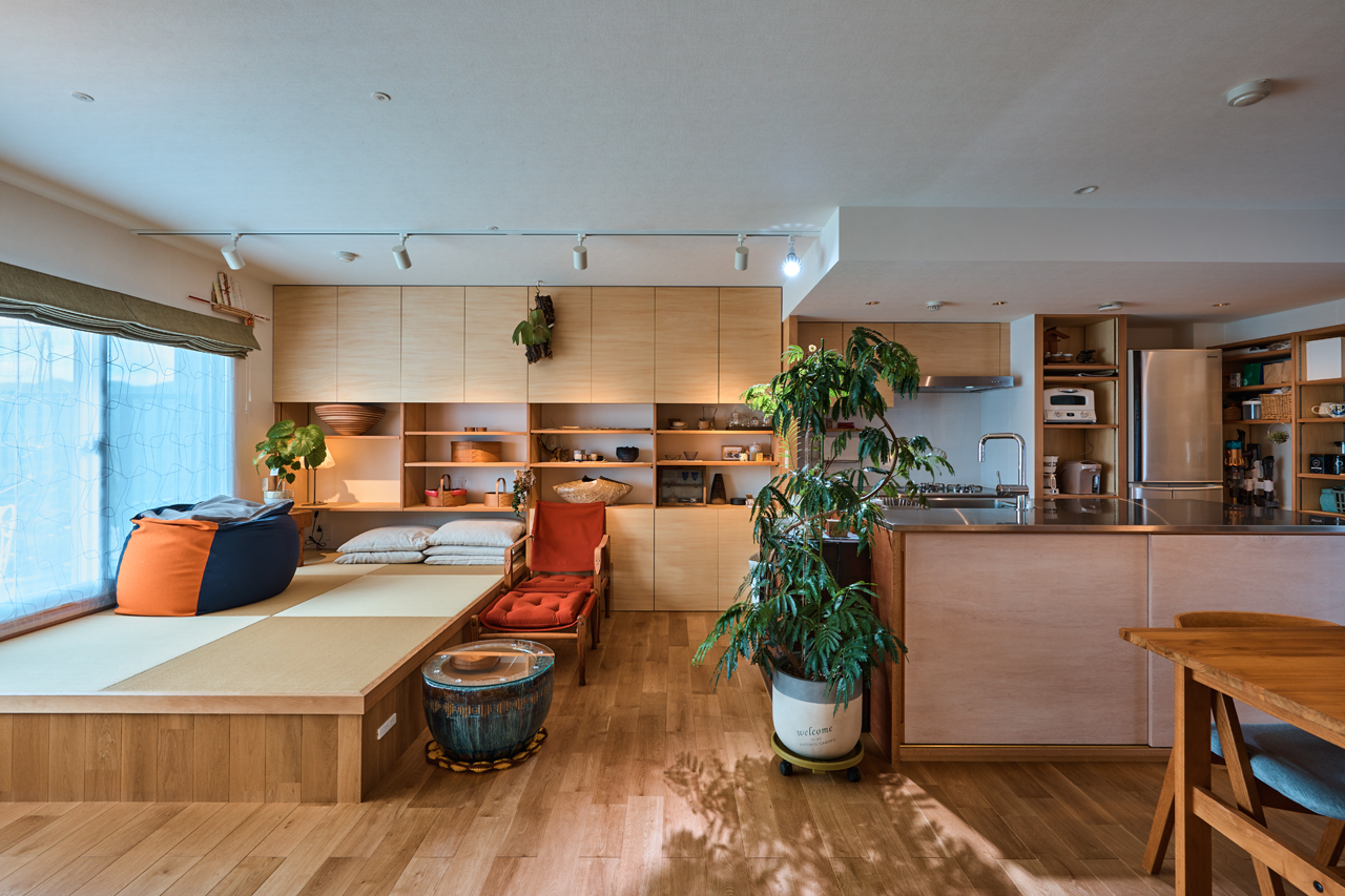 それぞれのプライバシーを保ち、それぞれの居場所をちりばめながらもお互いの気配を常に感じられる空間。LDKに自然と集まってくる中心にキッチンがあるそんな住まいに様変わりしました。